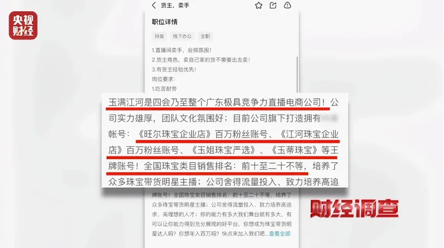 记者应聘进入广东省四会市玉满江河珠宝店。这家珠宝店拥有多个王牌直播账号,珠宝销售全国排名前十至二十。