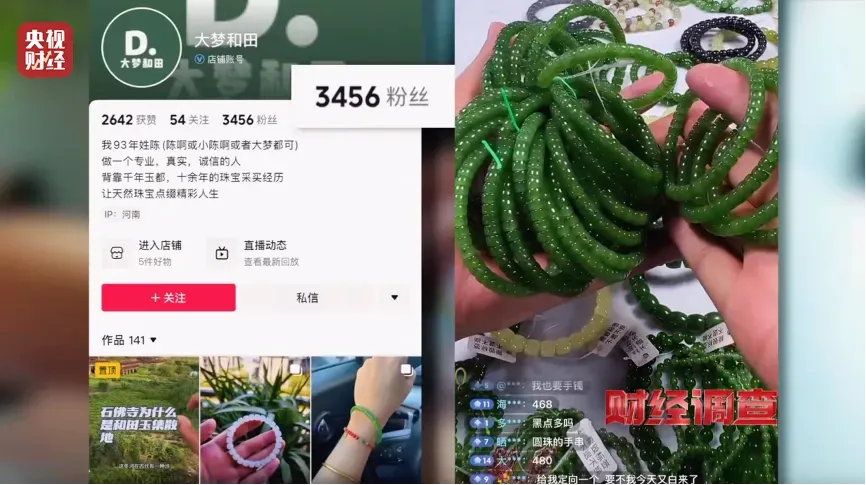 但记者记录下了主播开播前的真实情况,那条660元的和田玉手链,其实就是主播自己的货,摊主只是配合这位主播演了一场戏。