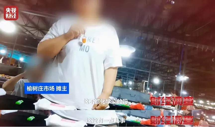 摊主坦言,这些是用化学药剂染色的假籽料。