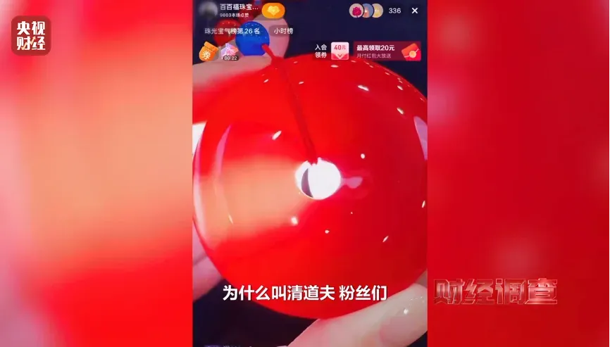 “百百福珠宝”直播间宣称产品含满量血红蛋白元素,号称“清道夫”,声称能清理人体“脏东西”,尤其针对50岁以上人群,因佩戴于颈部可覆盖五脏六腑。