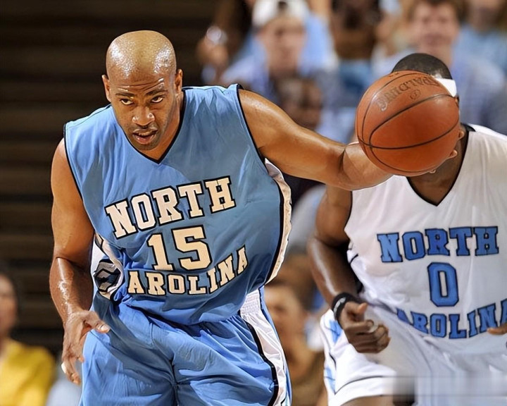 但北卡罗来纳大学的召唤改变了一切。那是乔丹的母校,是迪恩·史密斯的球队。卡特去了,成为乔丹之后最耀眼的北卡锋卫。1998年选秀,他在第5顺位被勇士选中,随即被交易到多伦多猛龙。