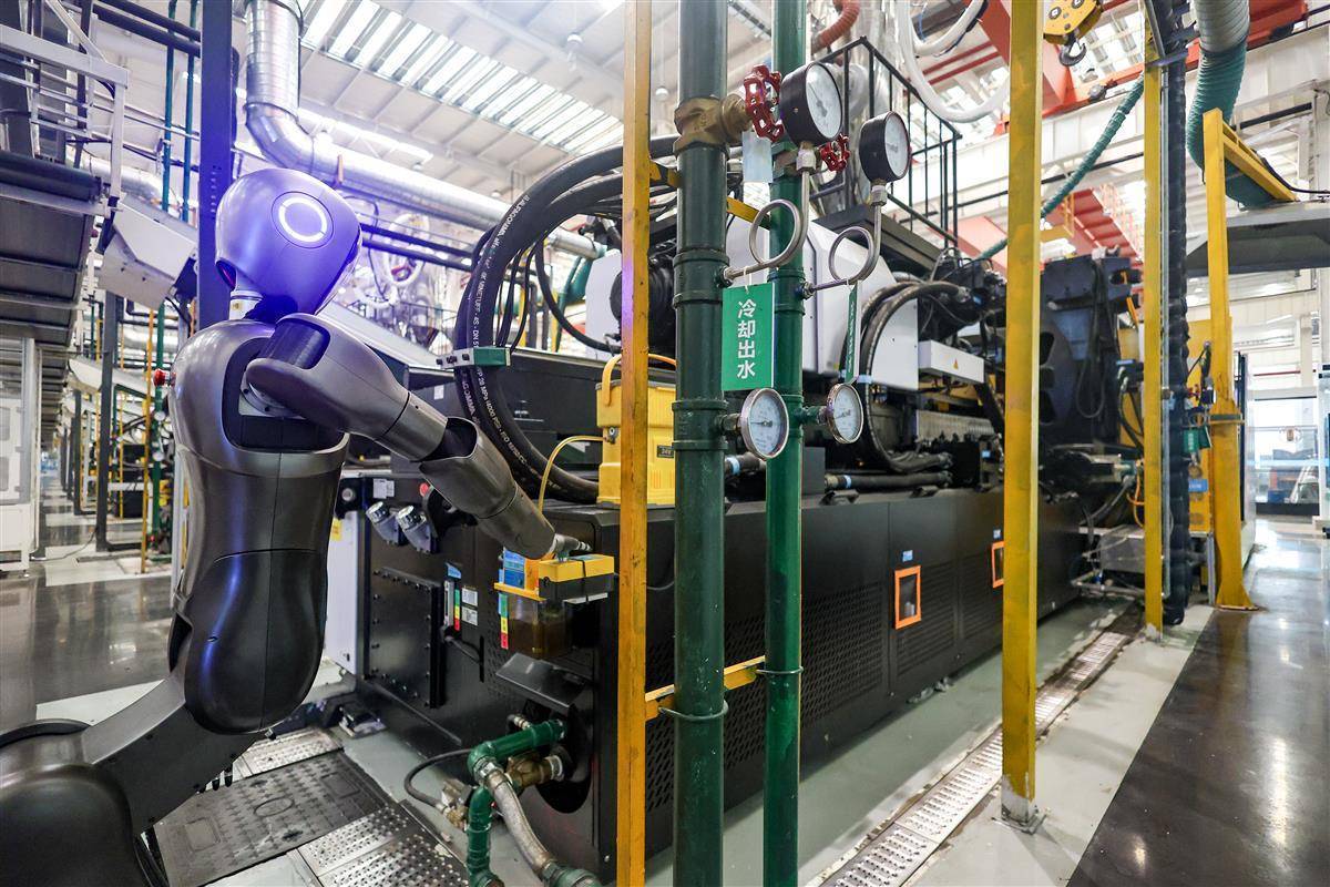 在美的洗衣机荆州工厂,第一代类人形机器人美罗已“上岗”超半年,成为生产线不可或缺的“常驻员工”。在“工厂大脑”的统一调度下,美罗们可自如穿梭于设备之间,稳稳搬运9公斤重的洗衣机后桶,精准完成3D质检、设备巡检、钣金上料等任务。