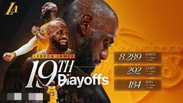 据悉詹姆斯本赛季与火箭的系列赛,将是詹姆斯第19次季后赛之旅,追平卡尔-马龙与约翰-斯托克顿,成为NBA历史上进入季后赛次数最多的球员。随后NBA官方还晒出了詹姆斯的19项伟大数据,致敬詹姆斯的19次季后赛征程。