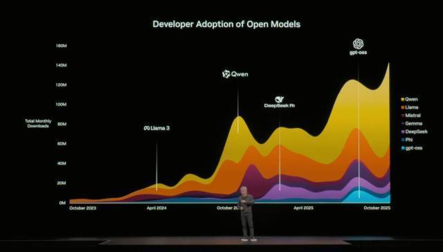 黄仁勋在GTC大会上说得直白,中国在开源领域遥遥领先,阿里千问已占据开源模型大部分市场份额。他甚至放了张图,全球AI竞争中,来自中国的阿里通义千问Qwen“断层领先”,并且领先优势还在持续扩大中。